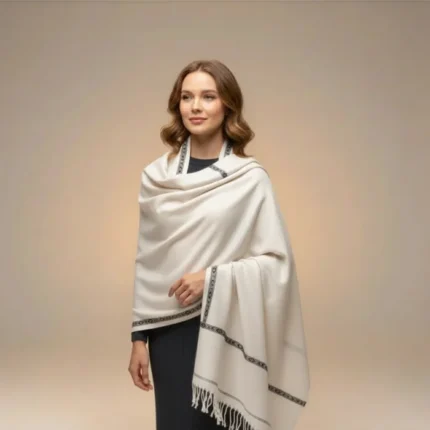 Pure Pashmina Shawl Wrap for Luxury, Weddings & All Occasions (White)